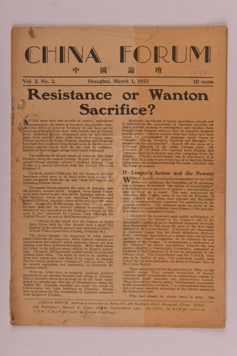 1933年3月1日版《中国论坛》(China Forum Shanghai March.1,1933)