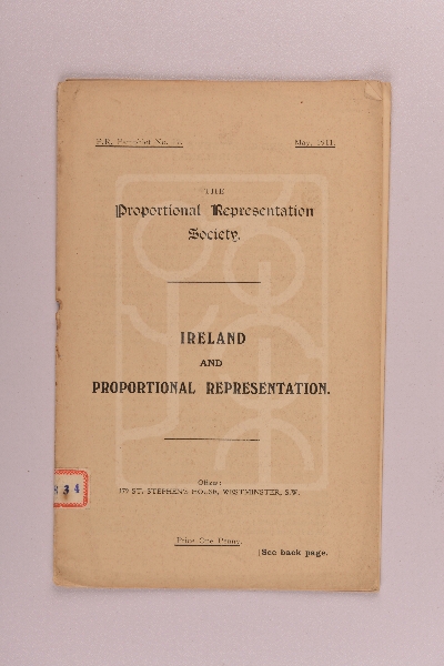 1911年版《爱尔兰与比例代表制》(Ireland and Proportional Representation)
