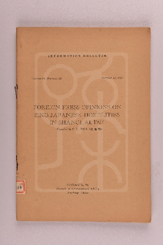 1937年版《国外新闻界对1937年中日在上海战争行动的看法》(Foreign Press Opini...