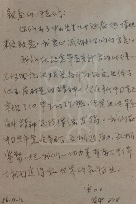 1956年11月12日宋庆龄致中国福利会工作人员信底稿
