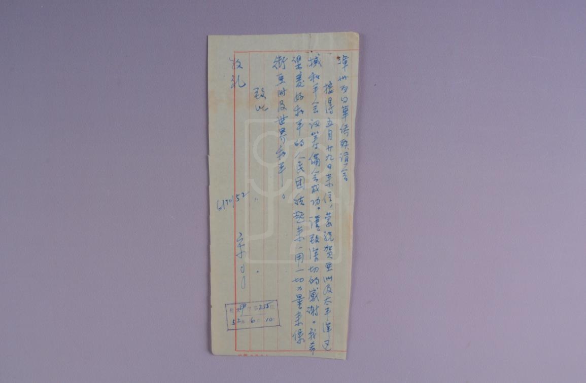 1952年6月10日宋庆龄致漳州归侨联谊会信底稿