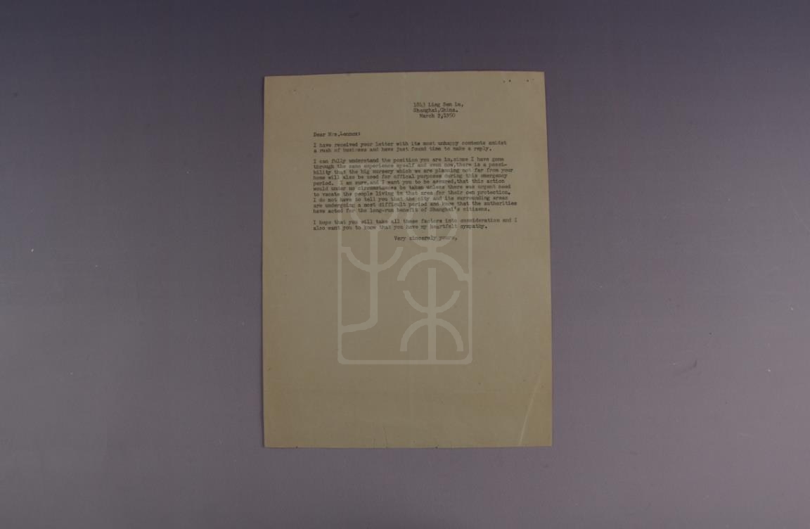 1950年3月2日宋庆龄致伦诺克斯夫人信底稿