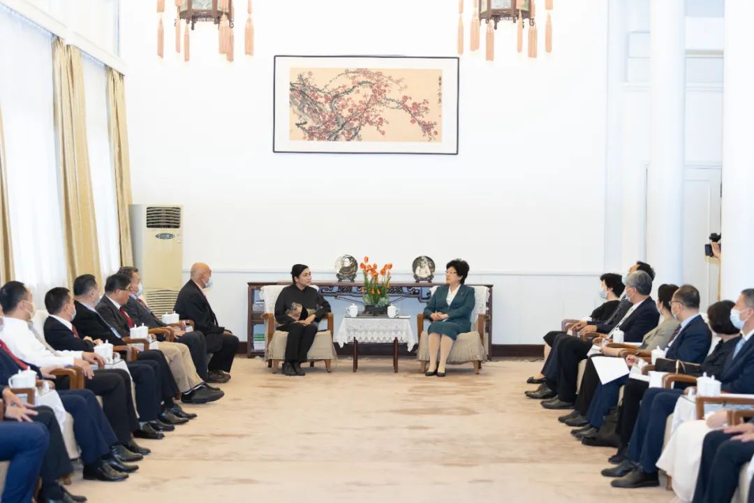 28日下午,中国宋庆龄基金会主席李斌会见孙中山宋庆龄亲属后人、生前友好和出席孙中山宋庆龄纪念地联席会议的有关代表。