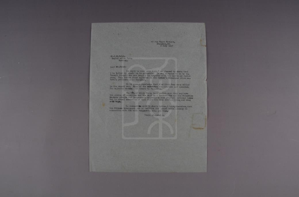 函谓:“对于你的询问,我很高兴地告诉你,你所问的那封信是真的。信的内容是总理本人口授给我的。他对被压迫的犹太民族深感同情。