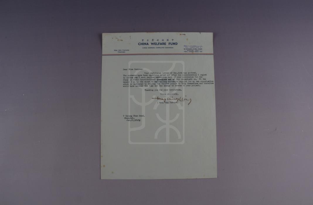 函谓:“我遗憾地告诉你,我必须谢绝世界宪法问题研究会和你的组织这两个机构的会员身份。目前,我正忙于组织安排全球各地对我自己的致力于帮助中国人民自救的机构的支持。因此,我既没时间也没有精力参与你们的计划。”