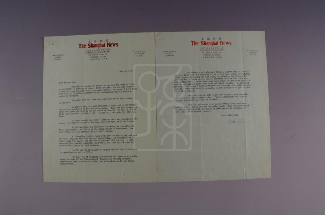 函谓:“此信主要是向你汇报这里的《中国建设》工作进展情况。……