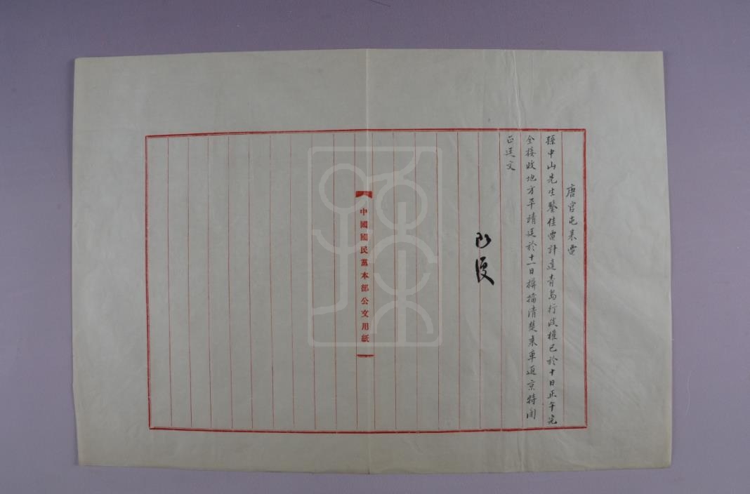电文谓:“孙中山先生鉴:佳电计达。青岛行政权,已于10日正午完全接收,地方平靖。廷于11日摒挡清楚,乘车返京,特闻。正廷。文。