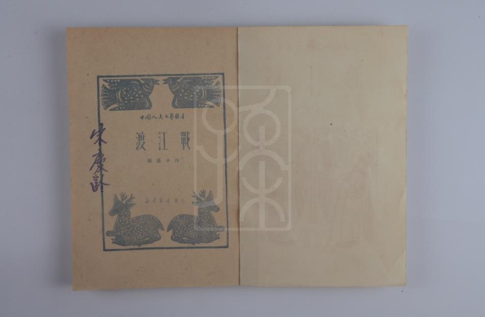 该件文物为宋庆龄保存的《渡江战》,陈山(笔名杨扬子)作,为中国人民文艺丛书社编辑的“中国人民文艺丛书”之一,新华书店1950年出版。扉页印有宋庆龄印章。