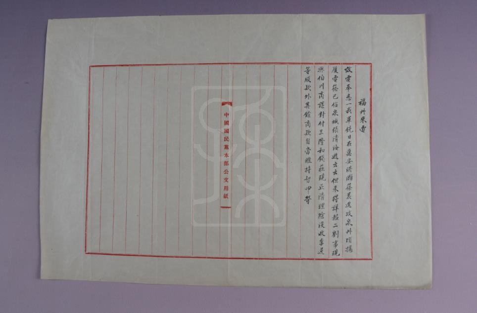 该件文物为宋庆龄保存的1922年12月20日许崇智致孙中山电。
