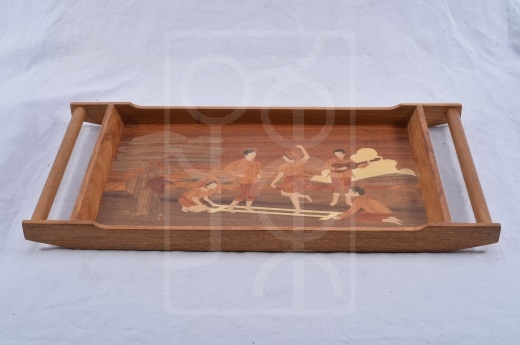 人物纹拼花木托盘