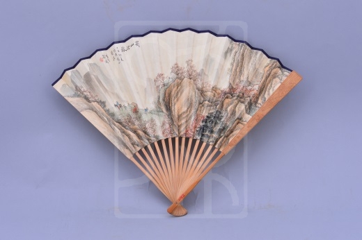 该件文物为宋庆龄保存的蜀山行旅图面竹骨折扇。