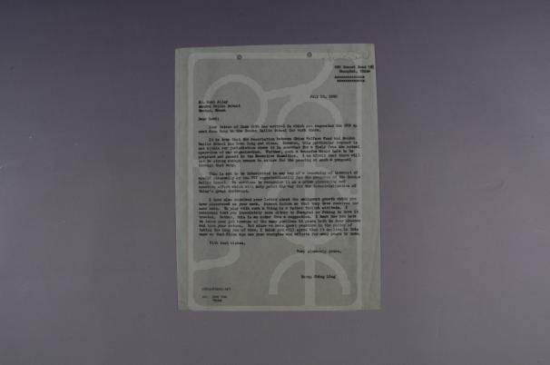 函谓:“你6月28日的来信已收到。从信中得知你要求中国福利基金会派王安娜到山丹培黎学校工作。诚然,中国福利基金会同山丹培黎学校有着长期密切的关系。然而,这项请求不属于我们的权限范围,因为它与本组织的实际工作领域相距甚远。而且,这样的调动须向执委会提出并取得它的通过。我恐怕没有足够有力的理由确保执委会通过这样的决议。无论如何不能把这一点解释成我个人或中国福利基金会这个组织不再那么关心山丹培黎学校的发展了。我们仍旧承认它是一种有助于为中国大西北指明一条工业化道路的具有开拓性和创造性的重要努力。”