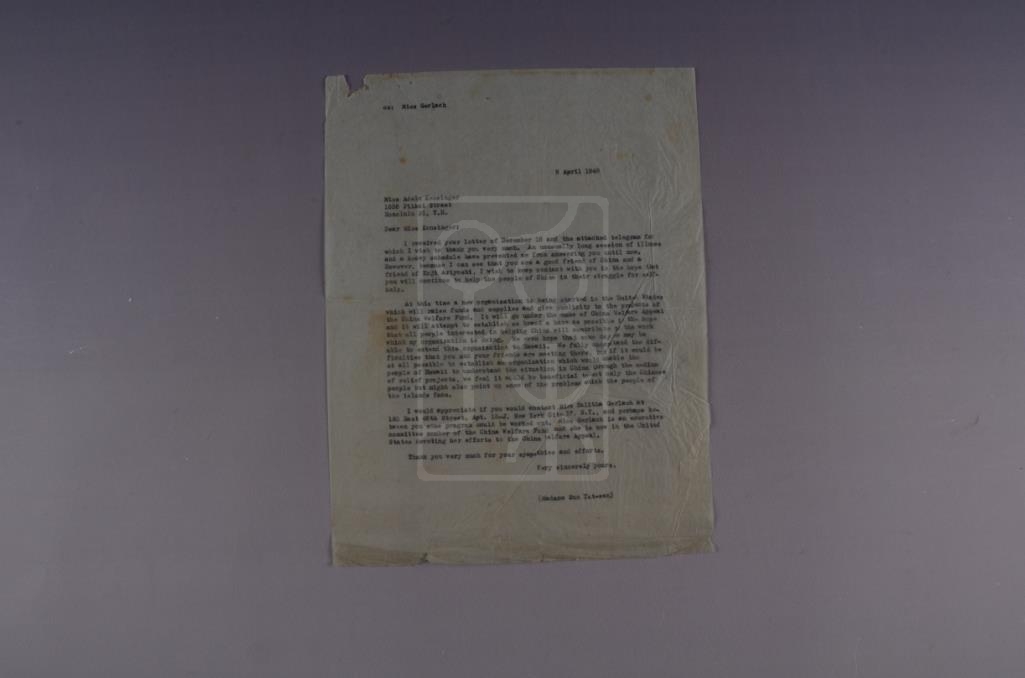 该件文物为1949年4月8日宋庆龄致阿黛尔·肯辛格信底稿。
