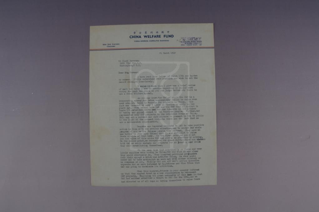 该件文物为1949年3月21日宋庆龄致克拉克·福尔曼信底稿。