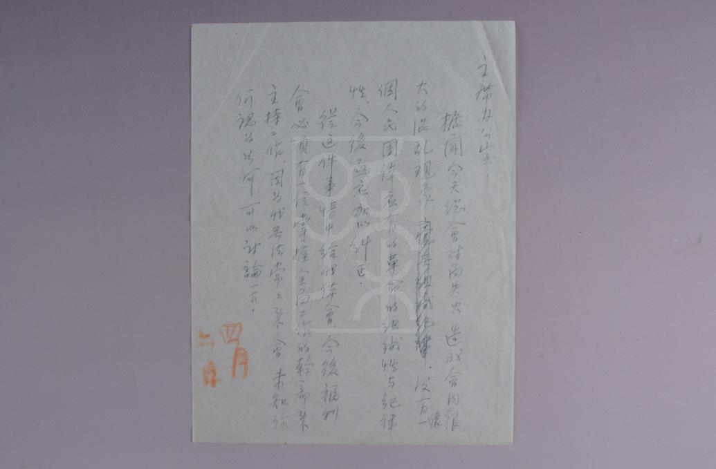 该件文物为1952年4月6日宋庆龄致中国福利会主席办公室信底稿。