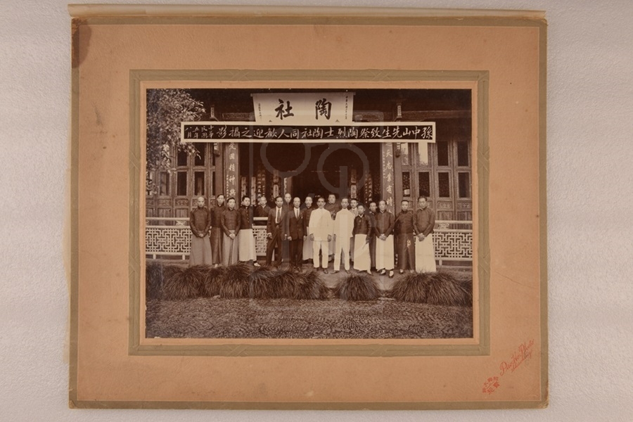 此为1916年8月孙中山在浙江绍兴祭奠陶成章时与陶社成员的合影照片,属上海孙中山故居旧藏文物。