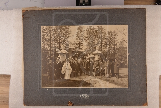 此为1913年2月16日孙中山携随员与日本友人在近卫笃麿卿墓前的合影照片,属上海孙中山故居旧藏文物。
