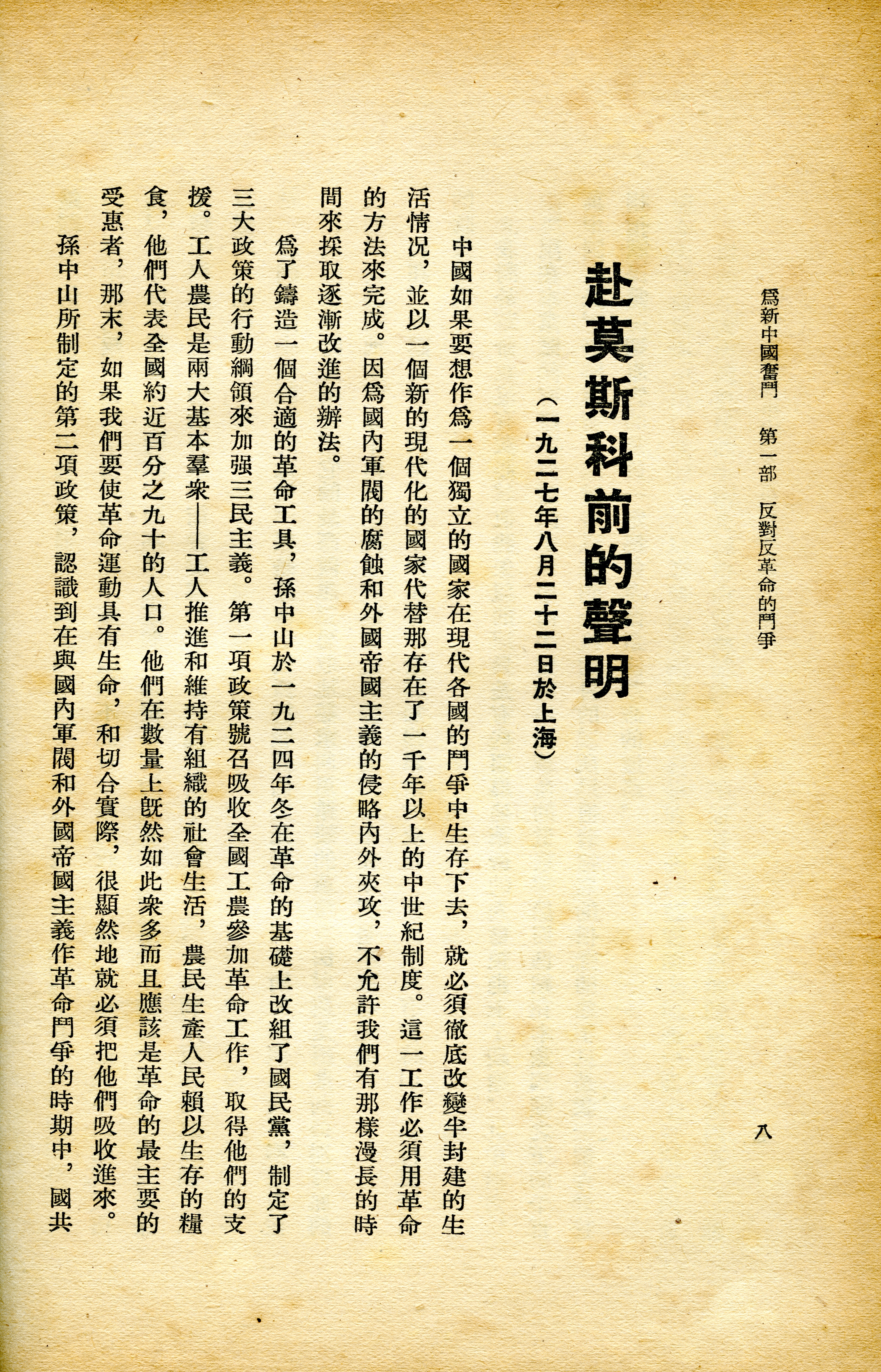 1927年8月22日,宋庆龄在上海发表的《赴莫斯科前的声明》