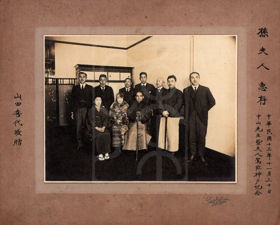 孙中山、宋庆龄在日本神户与前来欢迎的日本朋友合影