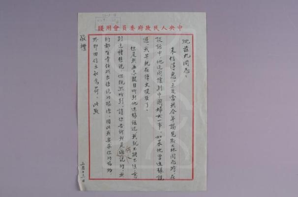 1958年9月30日宋庆龄致唐明照信