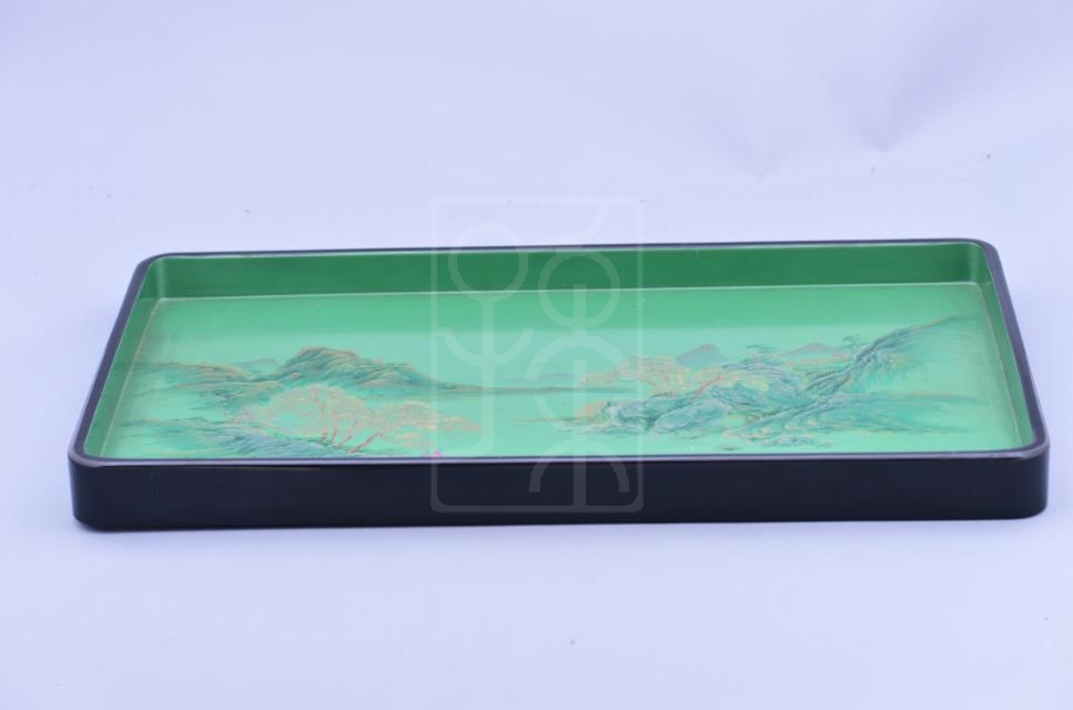 青绿山水纹漆托盘