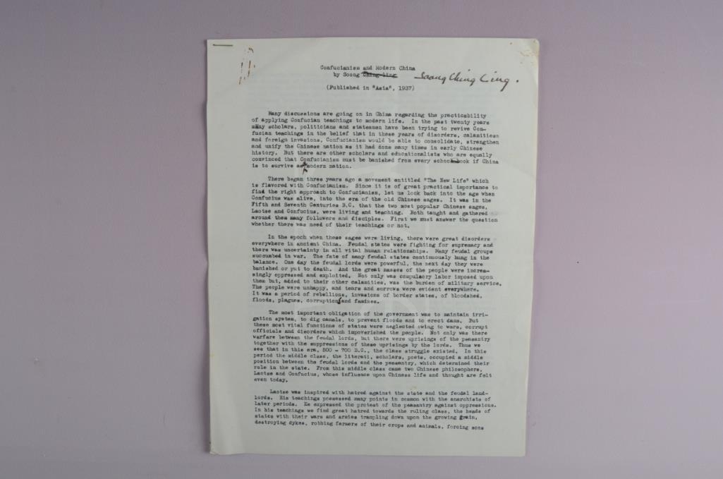 1937年4月宋庆龄文稿《儒教与现代中国》底稿