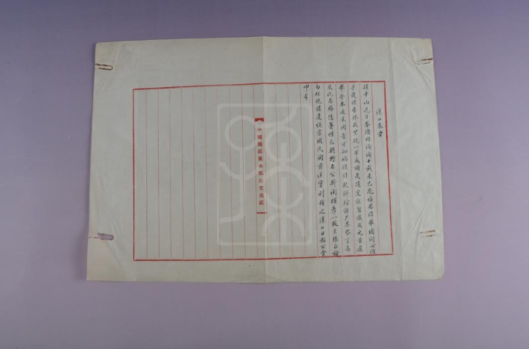 该件文物为宋庆龄保存的1922年11月26日汉口日报公会致孙中山电。