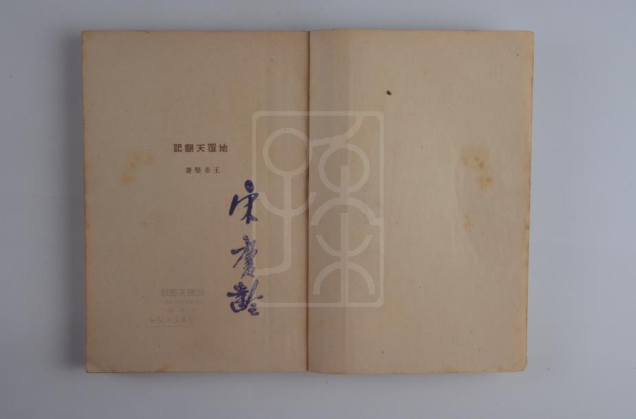 该件文物为宋庆龄保存的《地覆天翻记》,王希坚著,为中国人民文艺丛书社编辑的“中国人民文艺丛书”之一,由新华书店1949年出版。扉页印有宋庆龄印章。