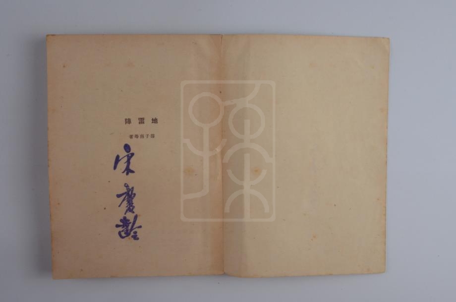 该件文物为宋庆龄保存的《地雷阵》,邵子南等著,为中国人民文艺丛书社编辑的“中国人民文艺丛书”之一,由新华书店1949年出版。扉页印有宋庆龄印章。