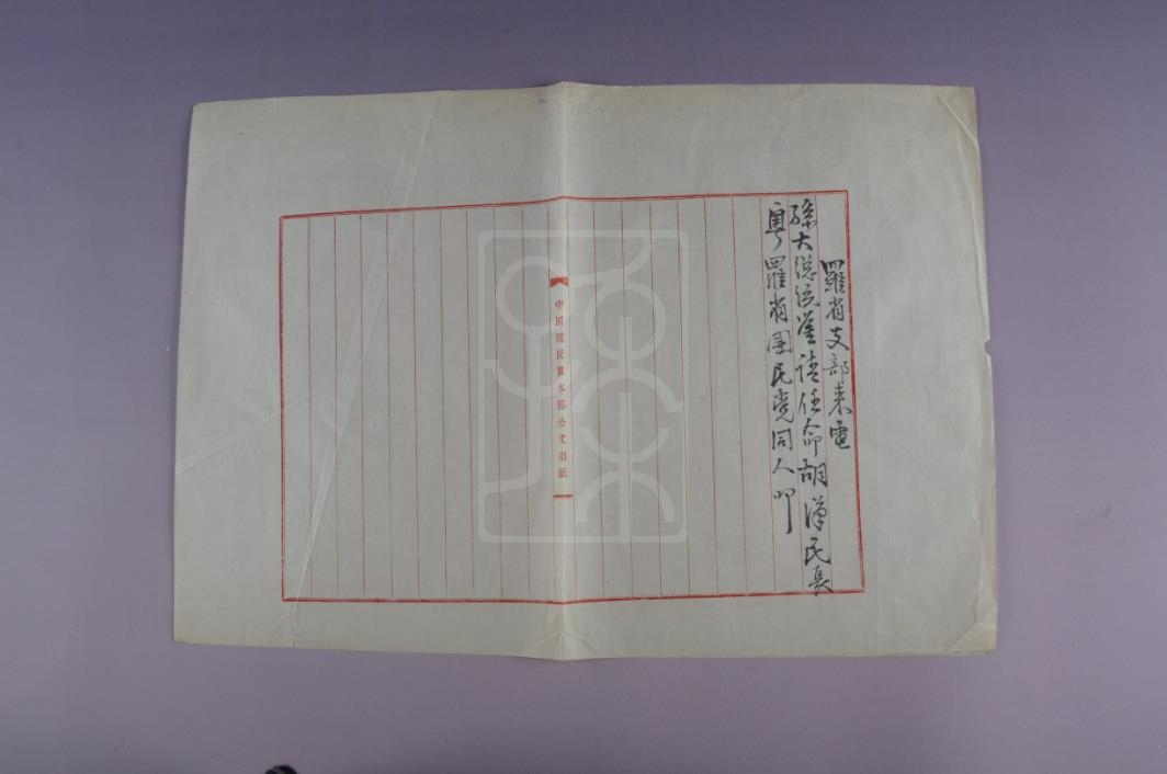 该件文物为宋庆龄保存的1923年1月中旬罗省国民党支部致孙中山电。