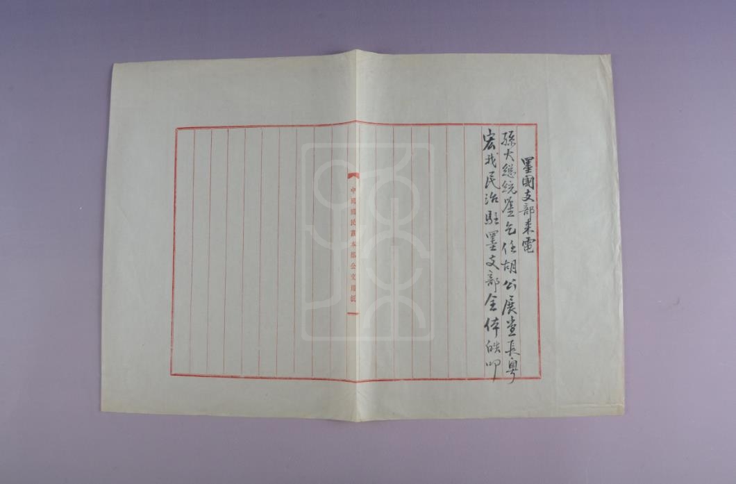 该件文物为宋庆龄保存的1923年1月19日墨西哥支部致孙中山电。