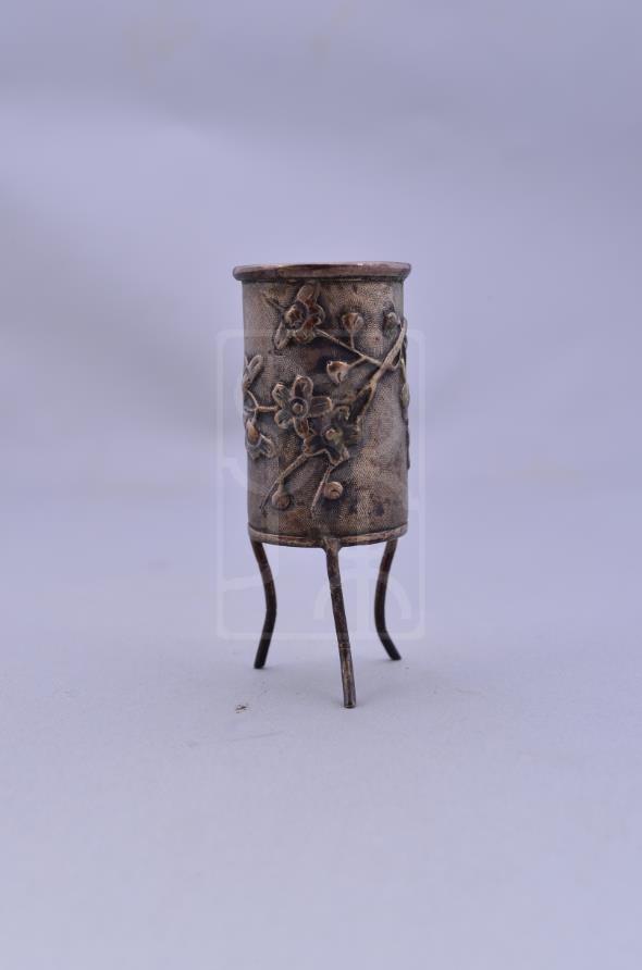 该件文物为宋庆龄保存的铜牙签瓶,浮雕花卉纹。