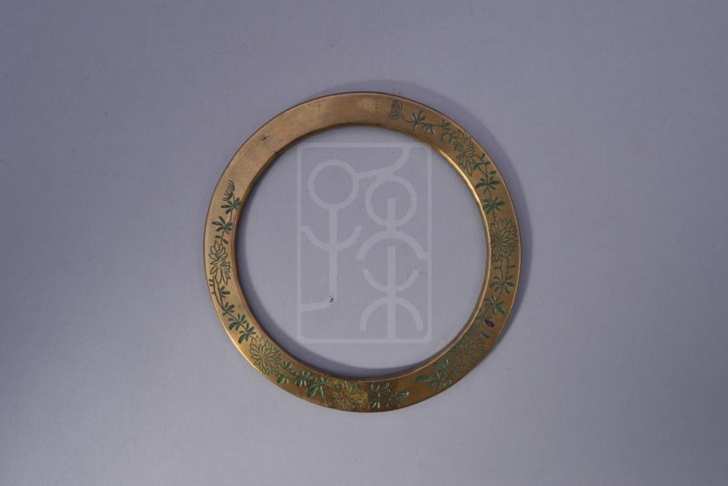 该件文物为宋庆龄保存的铜压纸圈,阴刻花卉纹。