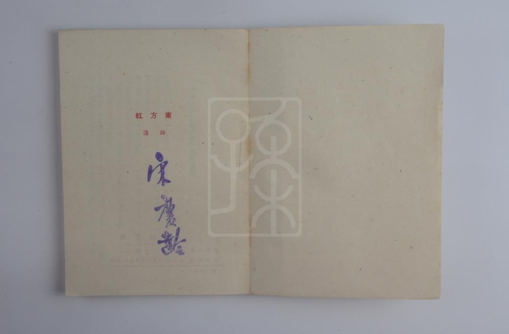 该件文物为宋庆龄保存的《东方红》,群众创作,为中国人民文艺丛书社编辑的“中国人民文艺丛书”之一,由新华书店1949年出版。扉页印有宋庆龄印。