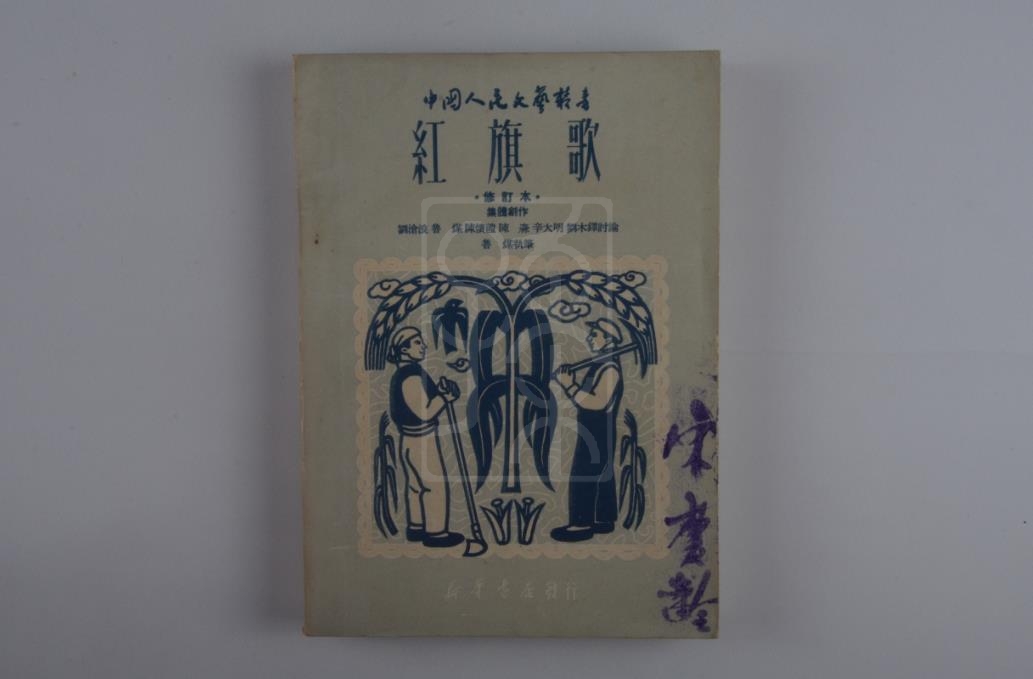 该件文物为宋庆龄保存的《红旗歌》,刘沧浪、鲁煤等集体创作,为中国人民文艺丛书社编辑的“中国人民文艺丛书”之一,由新华书店1950年出版。封面有宋庆龄印。