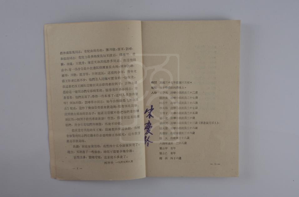 该件文物为宋庆龄保存的《无敌民兵》,柯仲平著,为中国人民文艺丛书社编辑的“中国人民文艺丛书”之一,新华书店1950年出版。扉页印有宋庆龄印章。