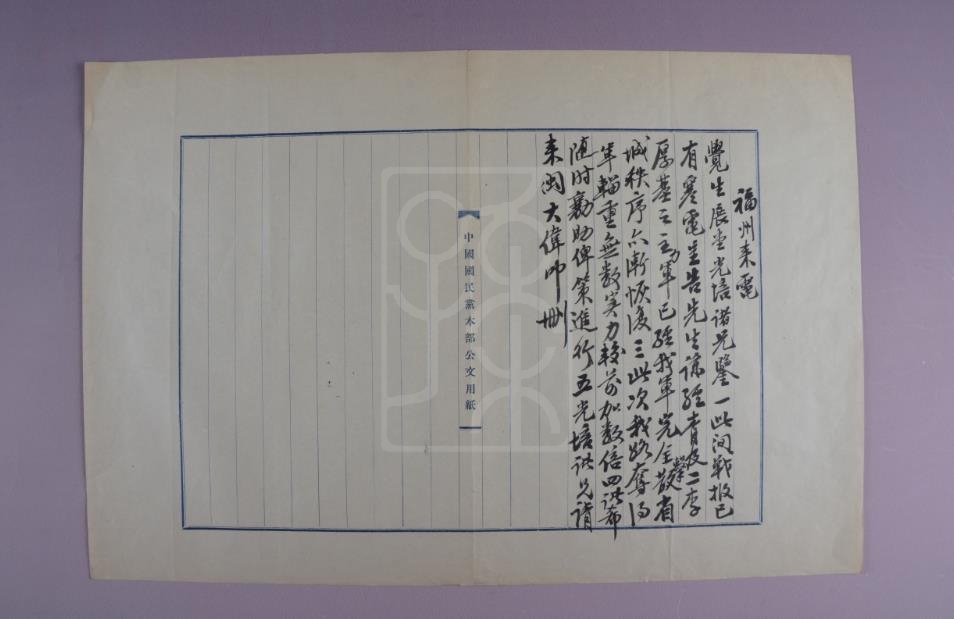 该件文物为宋庆龄保存的1922年10月15日黄大伟致居正、胡汉民、梅光培电。