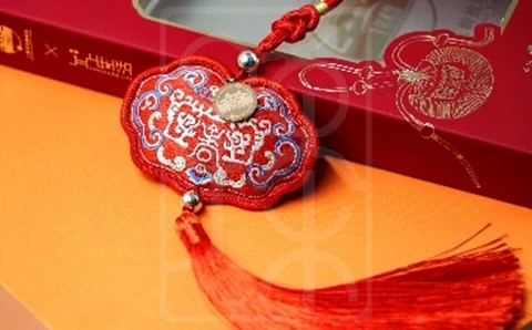 由上海宋庆龄故居与上海雷允上药业西区有限公司联袂出品,设计灵感取自宋庆龄儿时佩戴过的一枚香袋。香囊以长命锁为整体造型,一面匠心复刻了原香袋文物上的龙纹及寿字图形,另一面结合传统中国龙形象,传递出龙乘祥瑞、温暖和美、长岁延年的美好寓意。