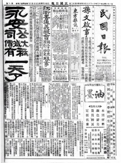 1924年11月20日上海《民国日报》关于孙中山在上海莫利爱路寓所接待新闻记者情况的报道