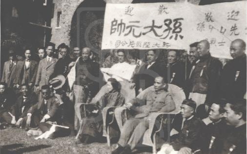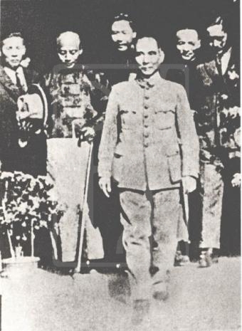 上海各界人士在外滩码头欢迎孙中山的场景