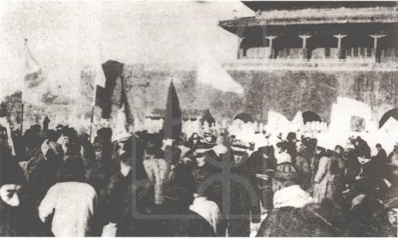 孙中山一行乘车经天安门受到数万群众热烈欢迎