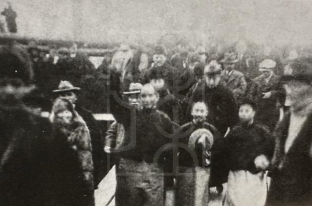 孙中山在利昌码头下船时向欢迎者招手致意