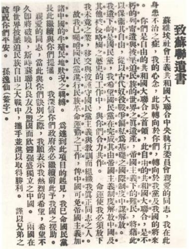 孙中山致苏联遗书