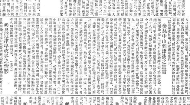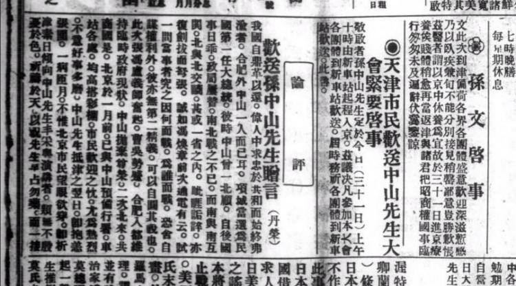 天津《大公报》发表的孙中山离津入京启事